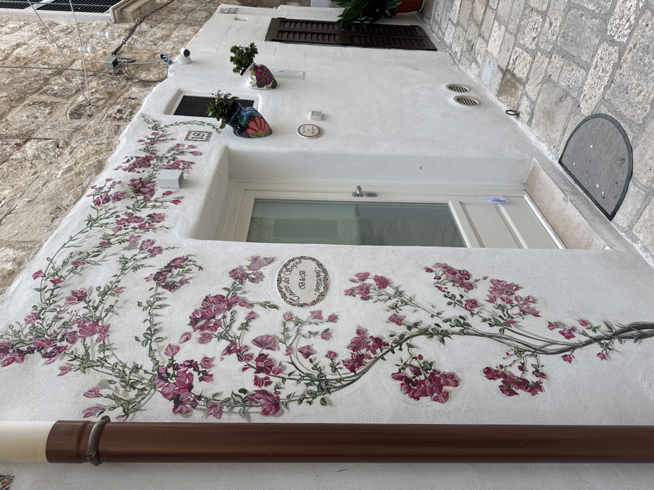 - "This image depicts a section of a white stucco building exterior located on a narrow, flagstone-paved street in Polignano a Mare, Italy" by FM-c7Gt12, licensed under CC BY 4.0