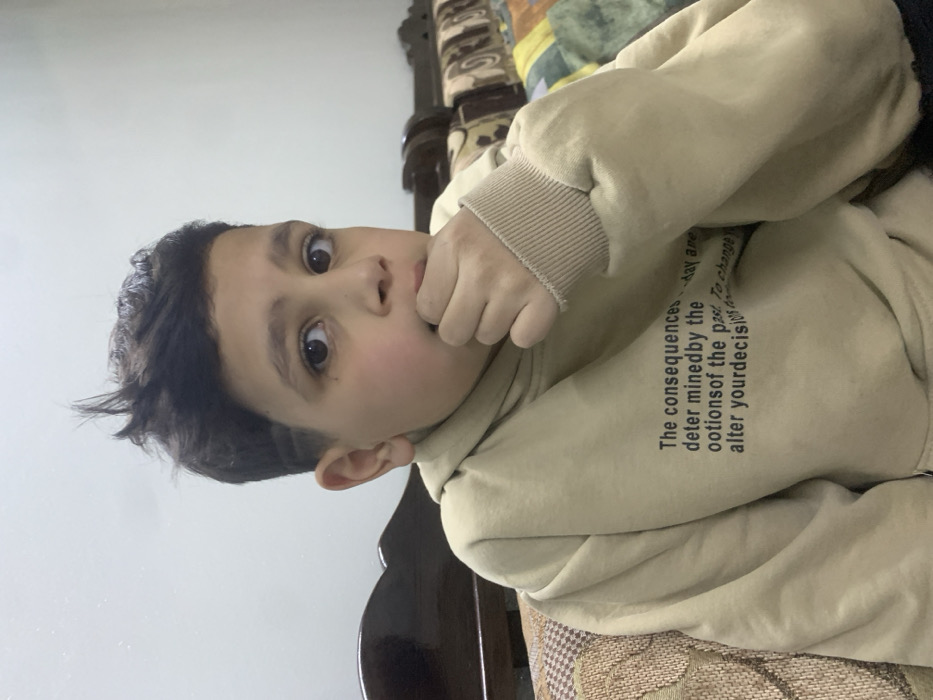 - "A young boy with dark hair and eyes wearing a beige sweatshirt is tilted to the left" by FM-mmOcg2, licensed under CC BY 4.0