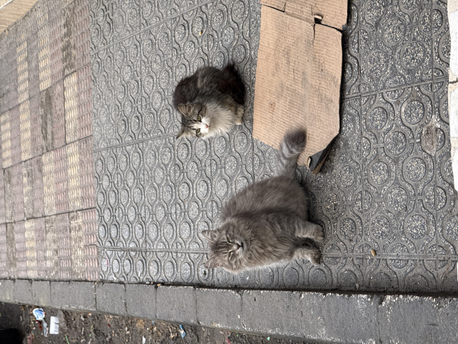 two felines on a paved sidewalk in Amman, Jordan
