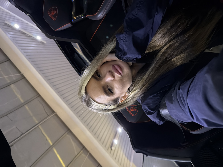 - "A female subject with long, straight, blonde hair, styled with two clips on the right side, is seated in the driver's position of a black Lamborghini sports car" by FM-wzXZC3, licensed under CC BY 4.0