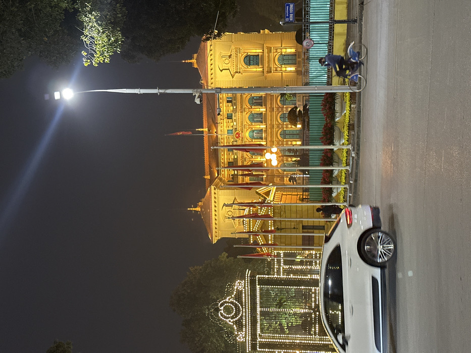 This nighttime image depicts the Presidential Palace on Hùng Vương Street in Hà Nội, Vietnam
