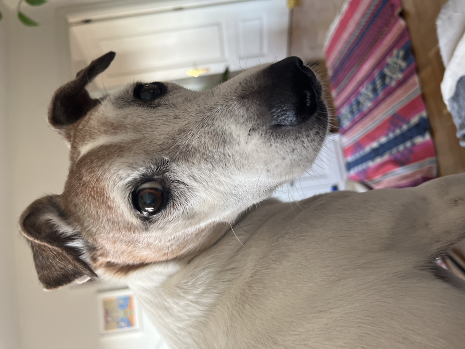 - "The image displays an eye-level indoor view of an adult dog, consistent with a Jack Russell Terrier type, within a domestic setting in Madrid, Spain" by FM-YUBw12, licensed under CC BY 4.0
