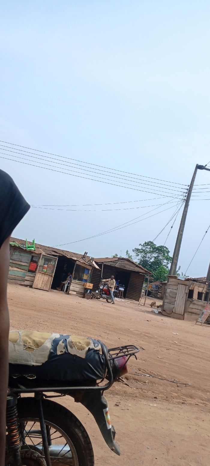 - "This image depicts a dusty, unpaved street scene in Ago-Abo, Nigeria, under a light blue, hazy sky" by FM-dLSxb2, licensed under CC BY 4.0