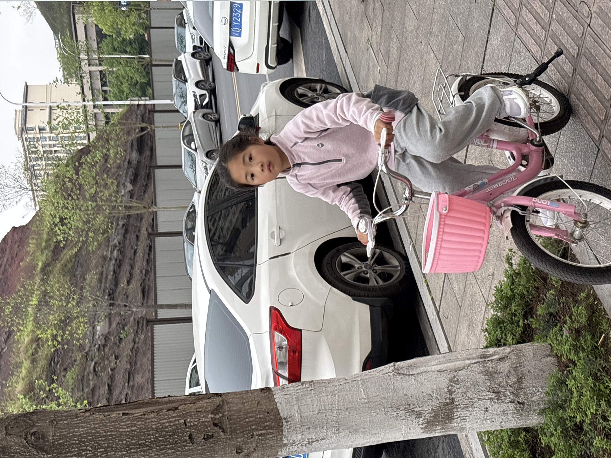 - "The image displays a young East Asian girl, approximately 7-10 years old, riding a pink child's bicycle on a gray paved sidewalk in Jiangjin, Chongqing Municipality, China" by FM-hd42B3, licensed under CC BY 4.0