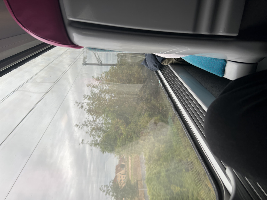 - "The image depicts an interior view from a passenger train carriage in Lampertheim, France, looking outward through a window on an overcast day" by FM-2ffbq1, licensed under CC BY 4.0