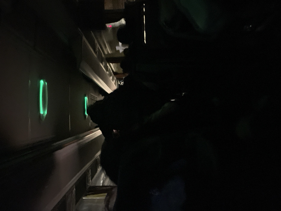 - "The image displays the dark interior of a passenger vehicle, likely a bus, viewed from a slightly elevated perspective looking forward" by FM-4IhFM2, licensed under CC BY 4.0