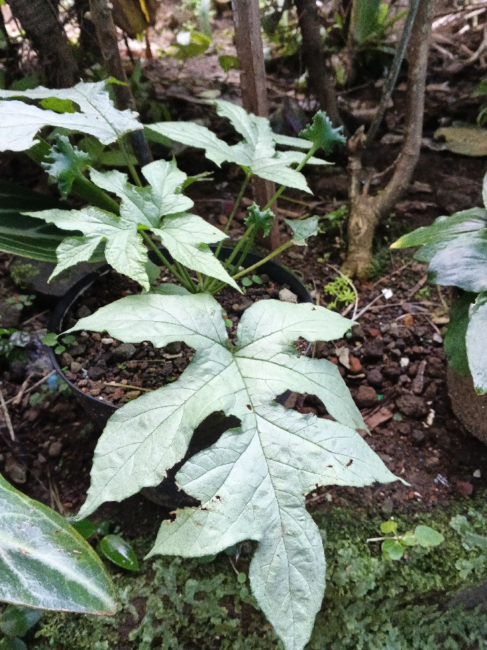 - "A close-up image depicts a plant with large, light green, deeply lobed leaves, showing minor damage such as irregular edges and small perforations" by FM-q0GF32, licensed under CC BY 4.0