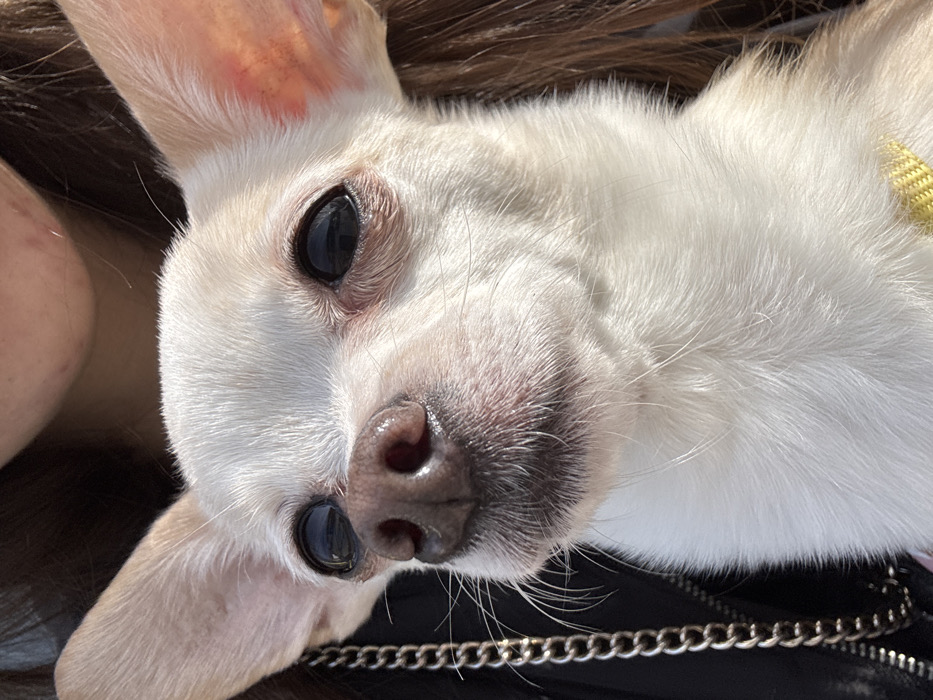 - "A close-up portrait depicts a small, short-haired Chihuahua dog, held by an individual, in Kozloduy, Bulgaria" by FM-43UC73, licensed under CC BY 4.0