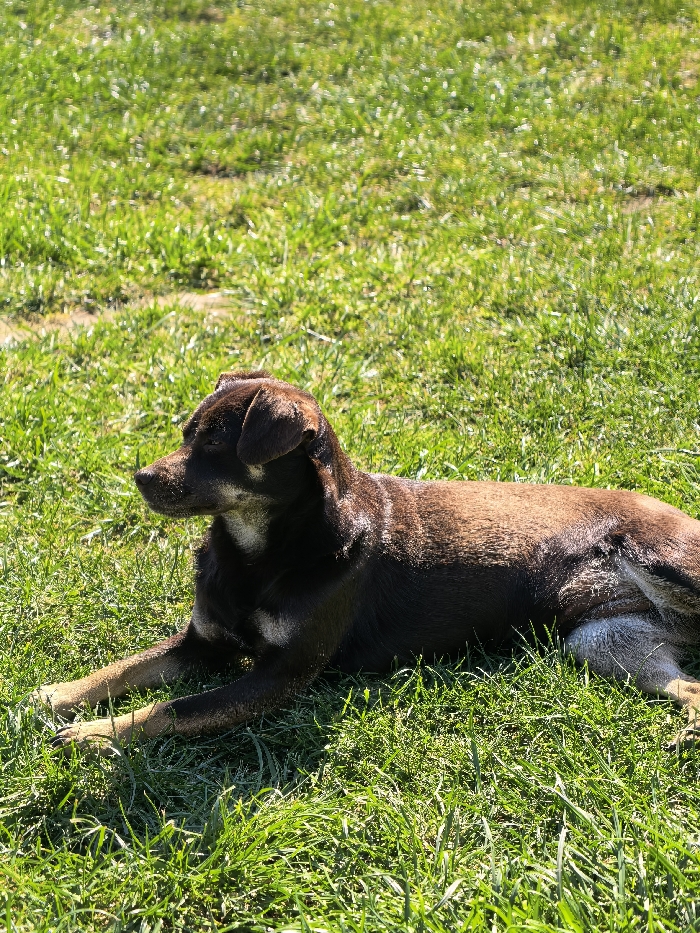 - "A dark brown mixed-breed dog is observed lying on a field of green grass in Mikrevo, Bulgaria" by FM-PbA122, licensed under CC BY 4.0