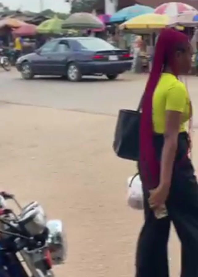 street scene with people walking and riding motorcycles. There are vendors with umbrellas, possibly in a market setting. People are wearing different types of clothing, including casual wear, uniforms, and reflective vests. Some of the motorcyclists are wearing vests marked "RSS 177." The environment appears to be a busy, outdoor location with structures and trees in the background.