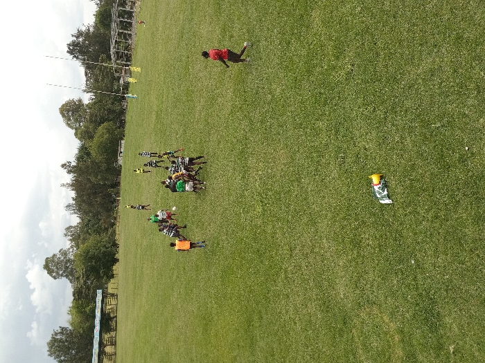 The scene depicts an outdoor sports field in the city of Nakuru, Kenya, under an overcast sky