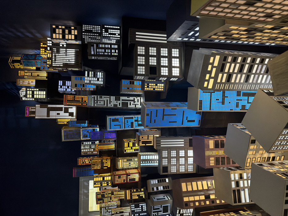 - "The image presents an indoor art installation depicting a miniature, illuminated cityscape at night" by FM-grnl23, licensed under CC BY 4.0