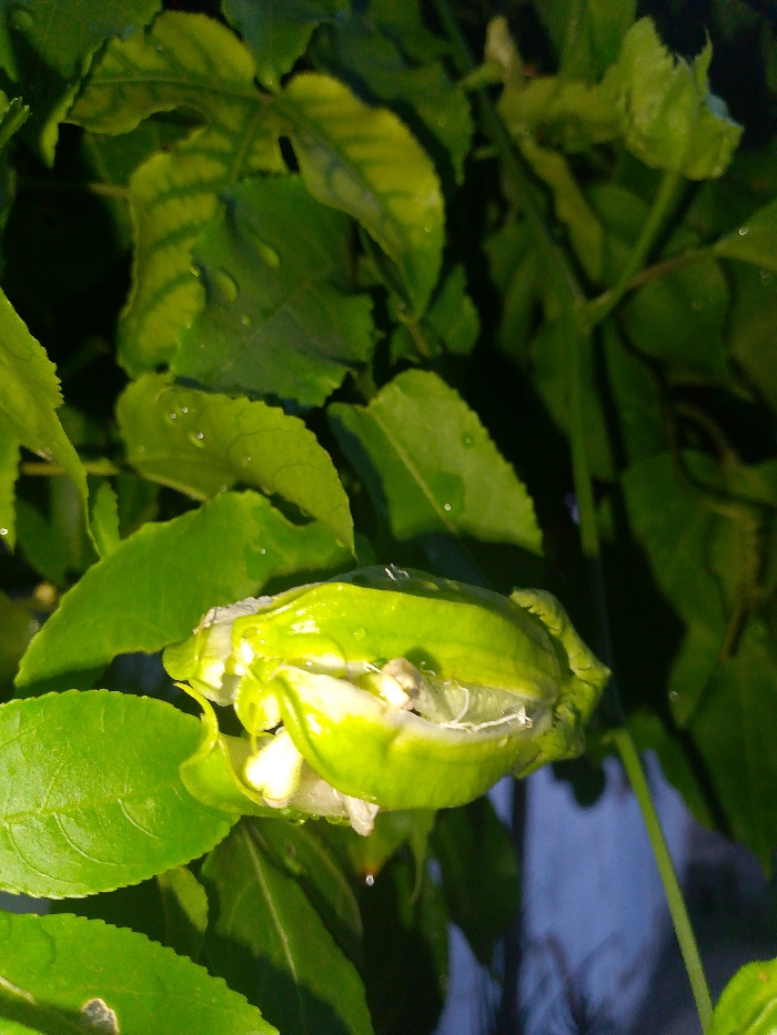 - "A vibrant green passion flower bud, partially open, reveals white interior structures" by FM-eI8CE3, licensed under CC BY 4.0