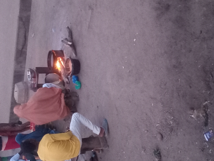 - "People sit near a makeshift fire, using metal containers as cookware" by FM-9cYG12, licensed under CC BY 4.0
