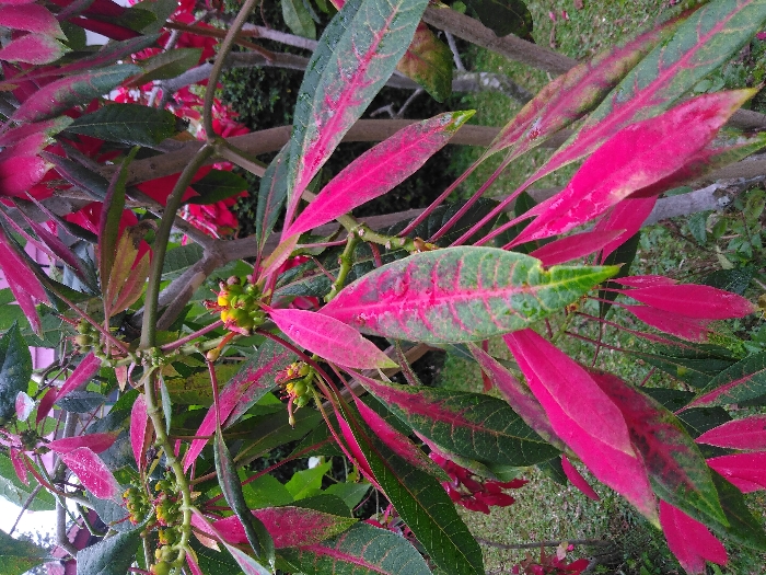 - "The image presents a close-up view of a large plant, identified as a Poinsettia (Euphorbia pulcherrima), situated outdoors or within a greenhouse in the city of Unknown, Norway" by FM-YNKRr1, licensed under CC BY 4.0