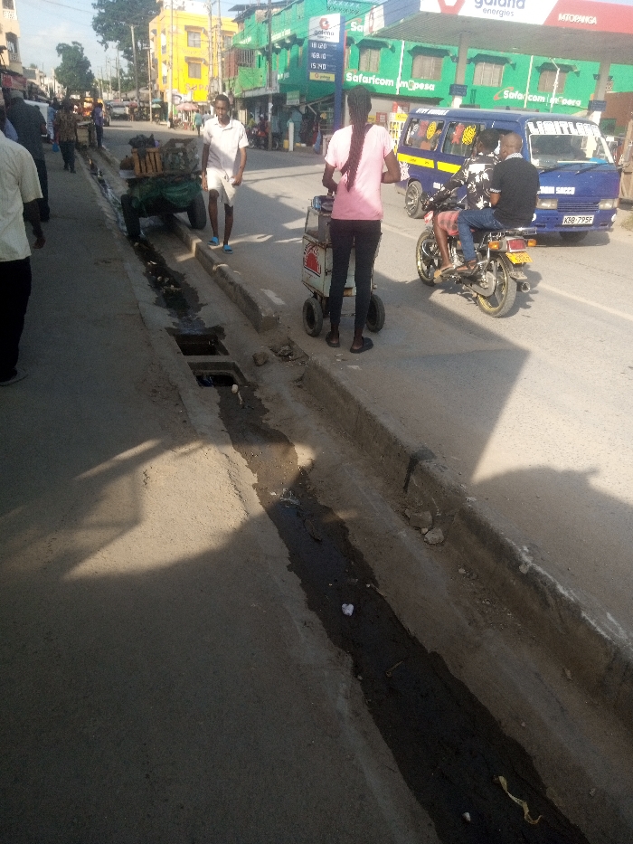 The image portrays an outdoor street scene within Mtopanga ward, Kenya