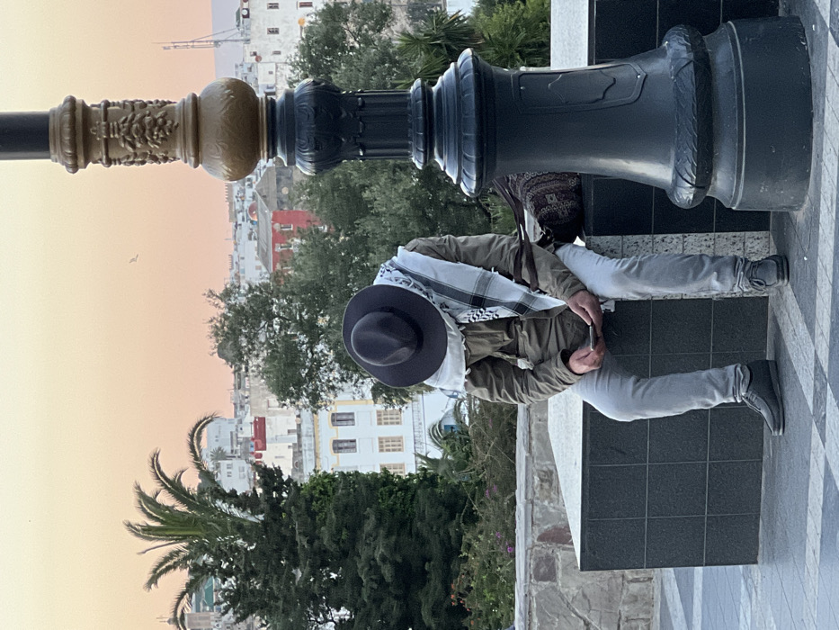 - "The image displays a solitary individual seated on a low stone wall at an elevated viewpoint overlooking the city of Tangier, Morocco, during either sunrise or sunset" by FM-1AGZJ2, licensed under CC BY 4.0