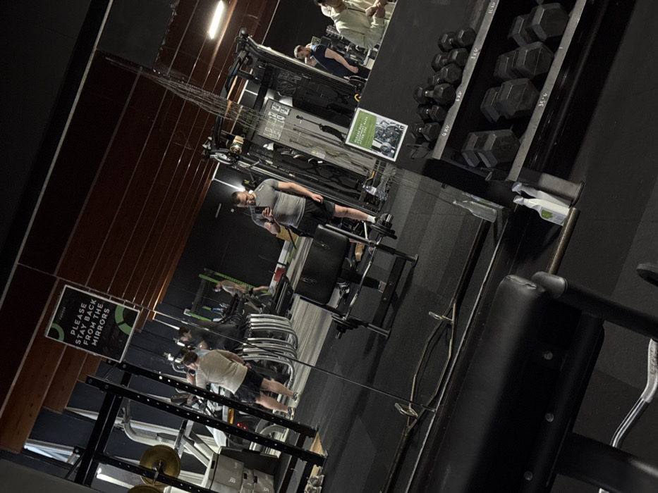 - "The image displays the interior of a gym located in Troutbeck Bridge, United Kingdom, primarily as a reflection in a large wall mirror" by FM-H3TWA2, licensed under CC BY 4.0