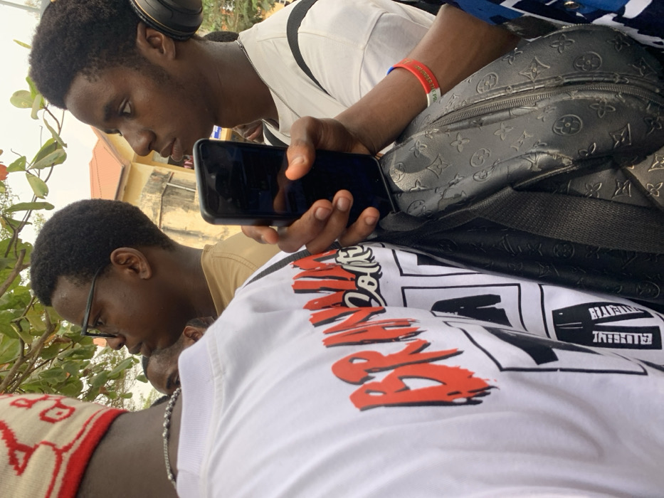 The image depicts three young male individuals in Ihiagwa, Nigeria, during daylight