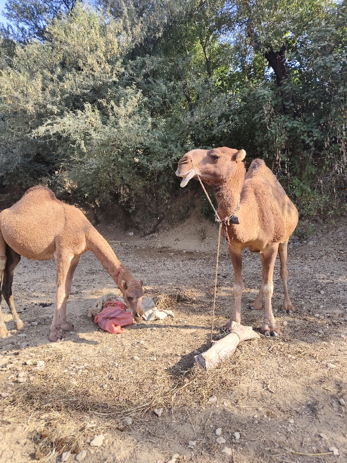 - "The scene depicts two dromedary camels in an unpaved, outdoor area of Thalikot, Pakistan, under clear daylight conditions" by FM-uPtwu2, licensed under CC BY 4.0