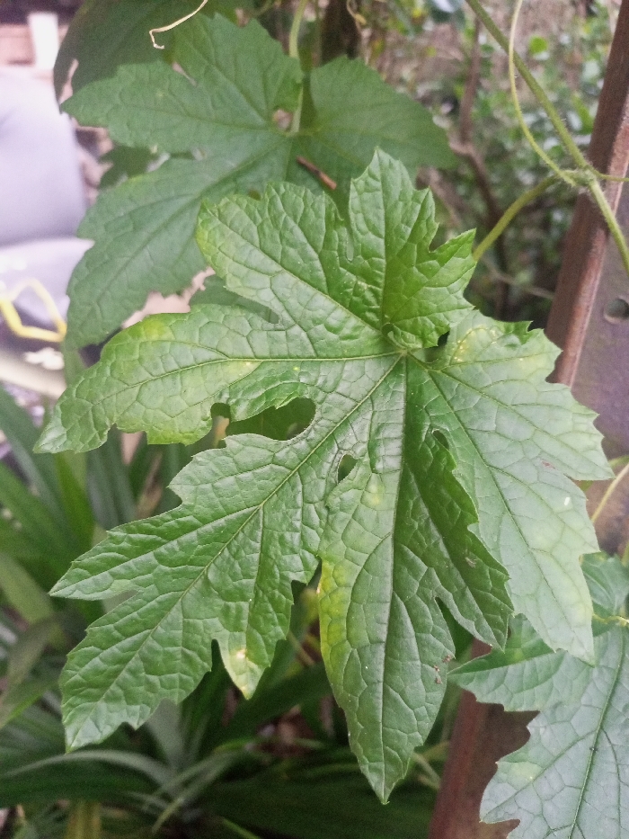 - "The image displays a close-up view of a single, deeply lobed green leaf, situated in Bamhori, India" by FM-oStVl1, licensed under CC BY 4.0