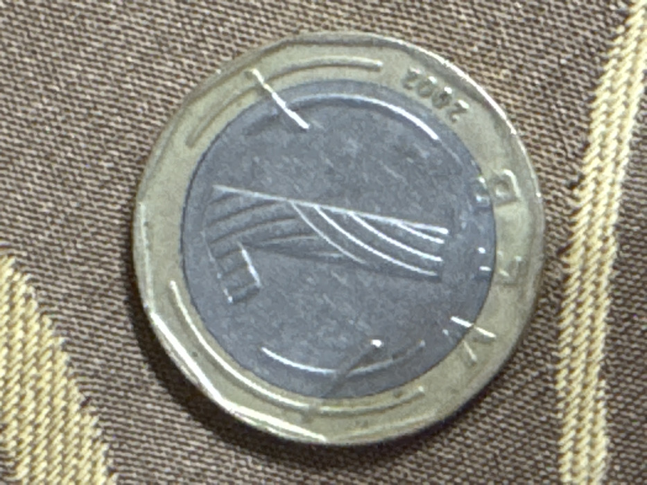 - "A German 1 Euro bimetallic coin, minted in 2002, rests on a textured fabric surface in Lovech, Bulgaria" by FM-APJxy1, licensed under CC BY 4.0