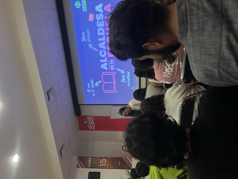 The image captures an indoor event at the Universidad del Valle de México (UVM) Mérida Campus in Mérida, Mexico