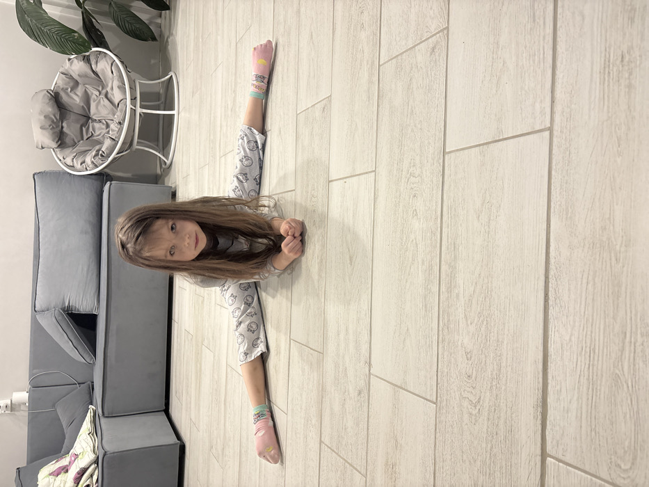 - "The image depicts a young female child performing a side split on a light-colored tiled floor within an indoor residential setting in Votkinsk, Russia" by FM-a9iVu2, licensed under CC BY 4.0