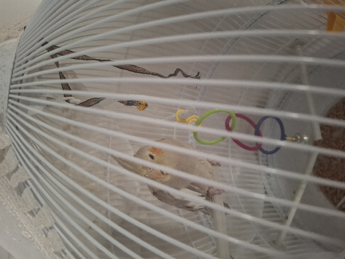 - "The scene depicts a light-colored Cockatiel parrot inside a white, domed birdcage located in Krumovo Gradishte, Bulgaria" by FM-hkf3K3, licensed under CC BY 4.0