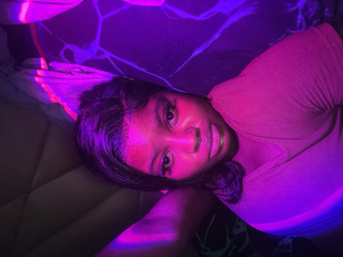 - "A woman with dark hair and eyelashes lies on a light-colored surface under vibrant purple and pink lighting" by FM-Ndipm1, licensed under CC BY 4.0