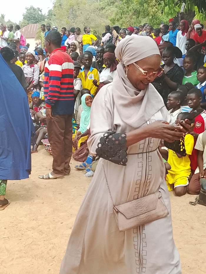 An outdoor gathering in Akwanga, Nigeria, depicts a crowded scene on unpaved dirt ground under daylight conditions