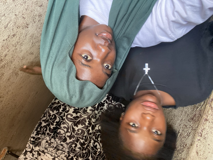 The image depicts two young females indoors in Sabon Tasha, Nigeria