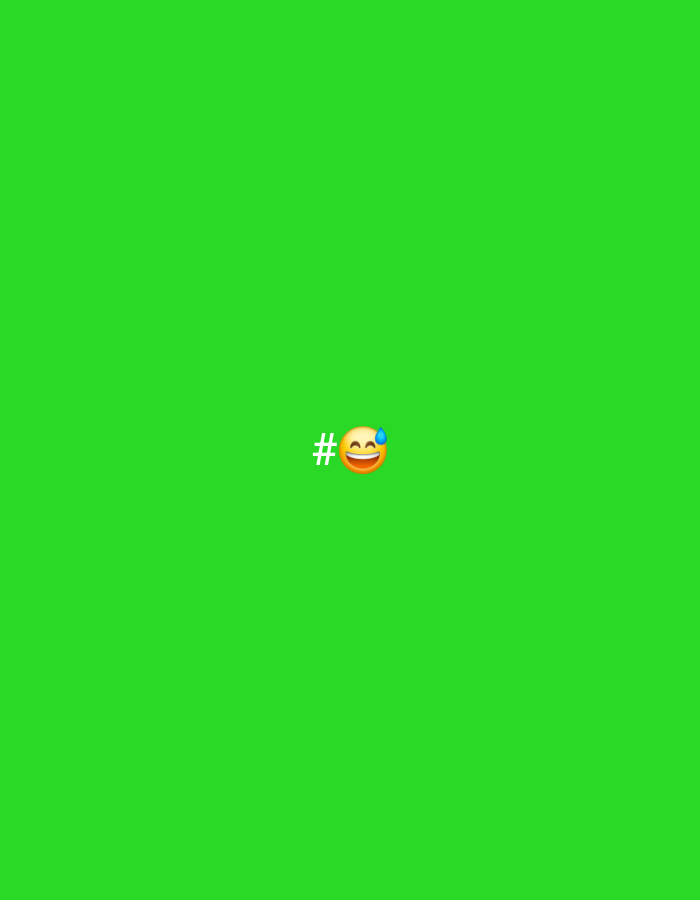 The scene, reportedly located on Rukuba Road, Nigeria, displays a uniform solid green background. Centrally positioned within the frame are two graphical elements: a white hashtag symbol ('#') immediately to the left of a yellow circular emoji. The emoji depicts a grinning face with closed, upward-curved eyes, a wide, open-mouthed smile, and a single blue sweat droplet situated above its right eye. No people, discernible actions, or interactions are present. The environment is entirely a digital green field.