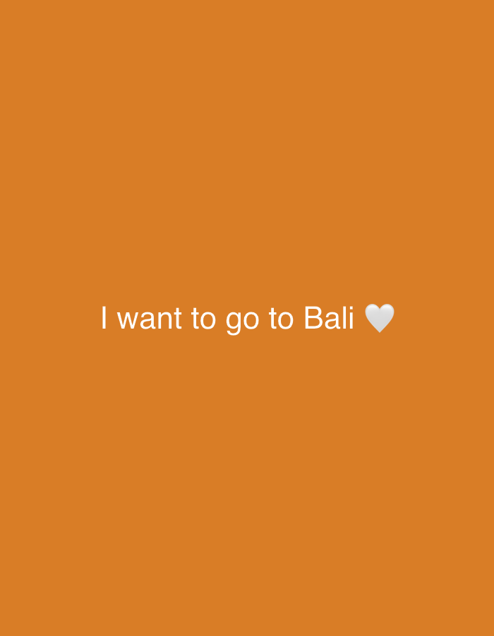 - "The image is a solid orange background with the text "I want to go to Bali" in white with a white heart emoji to the right of the text" by FM-ZgnHF3, licensed under CC BY 4.0