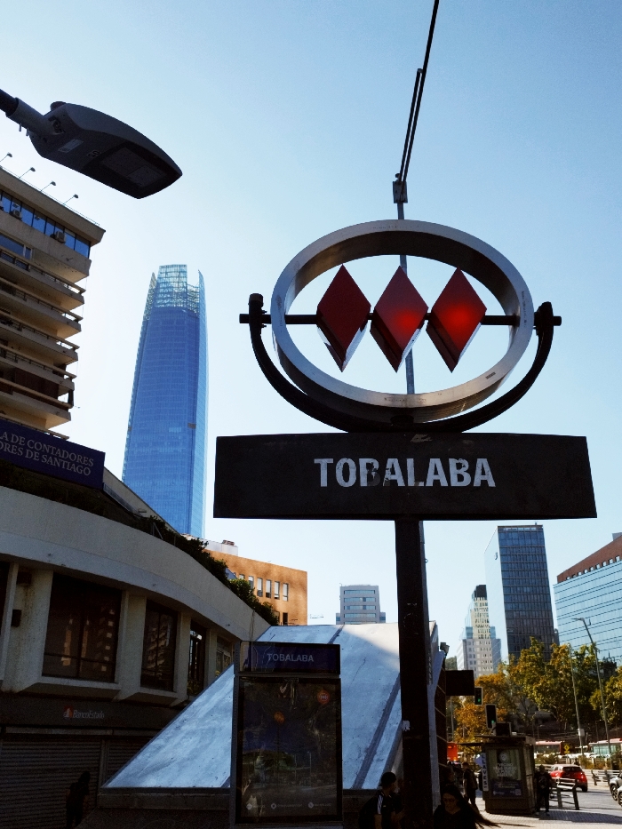 - ""TOBALABA" metro station entrance in Santiago, Chile" by FM-ZqBmD2, licensed under CC BY 4.0