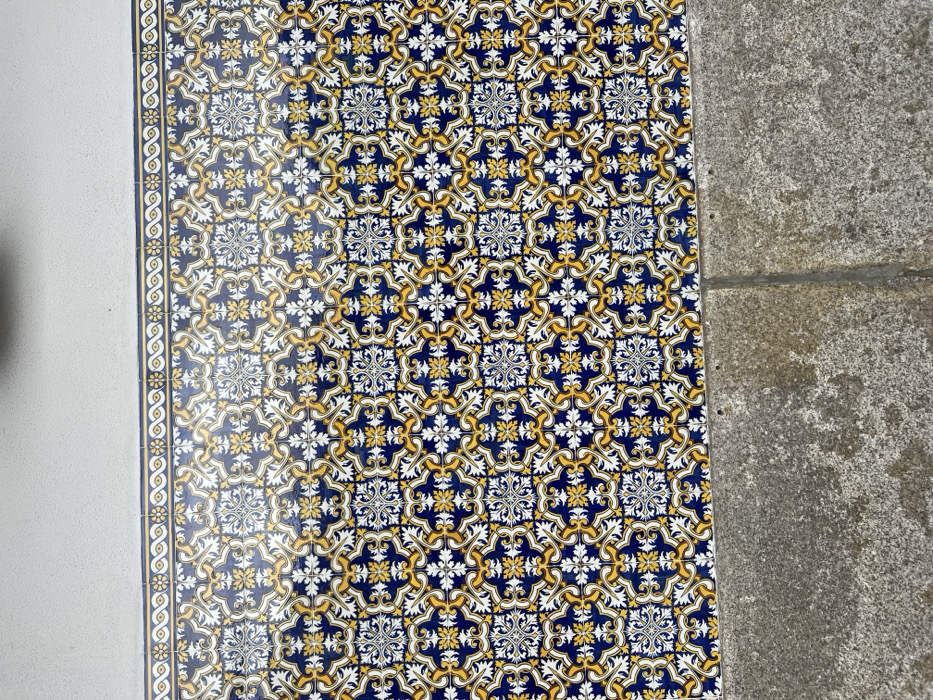 The image displays a section of an exterior wall and adjacent ground surface in Peso da Régua, Portugal