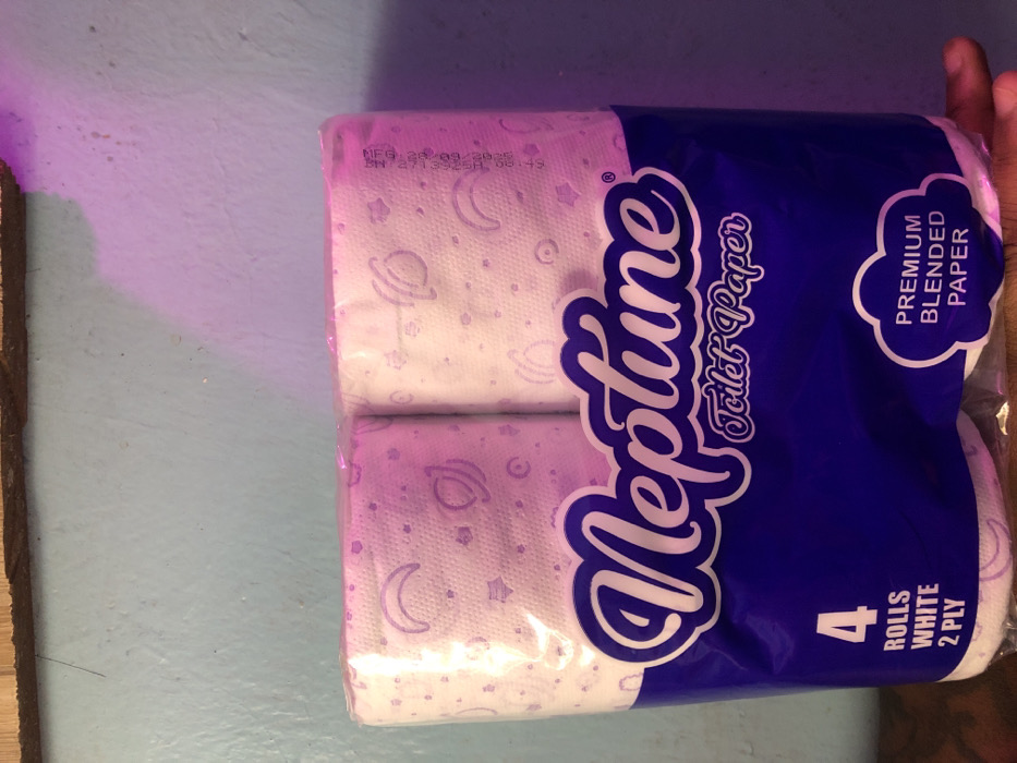 - "The image displays a four-roll package of "Neptune Toilet Paper" held by a dark-skinned hand" by FM-E8bxZ2, licensed under CC BY 4.0