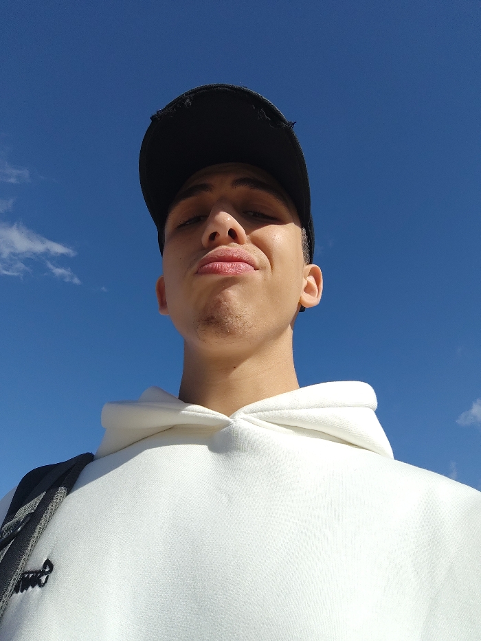 - "The image depicts a young male positioned from a low-angle perspective against a clear blue sky, which occupies the majority of the background" by FM-BskwX2, licensed under CC BY 4.0
