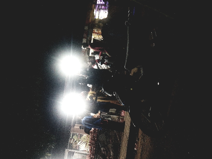 The image depicts a nighttime street scene in Jama A, Nigeria, illuminated primarily by artificial light sources