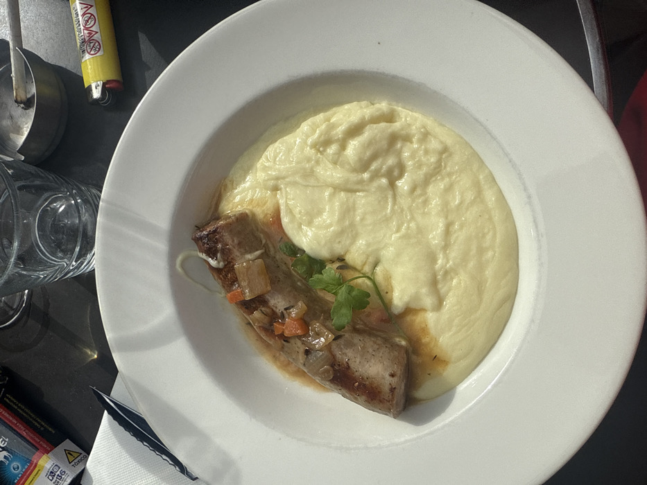 - "The image displays a close-up, high-angle view of a meal served on a dark, reflective table, likely in a cafe or restaurant in Paris, France" by FM-aGwX32, licensed under CC BY 4.0