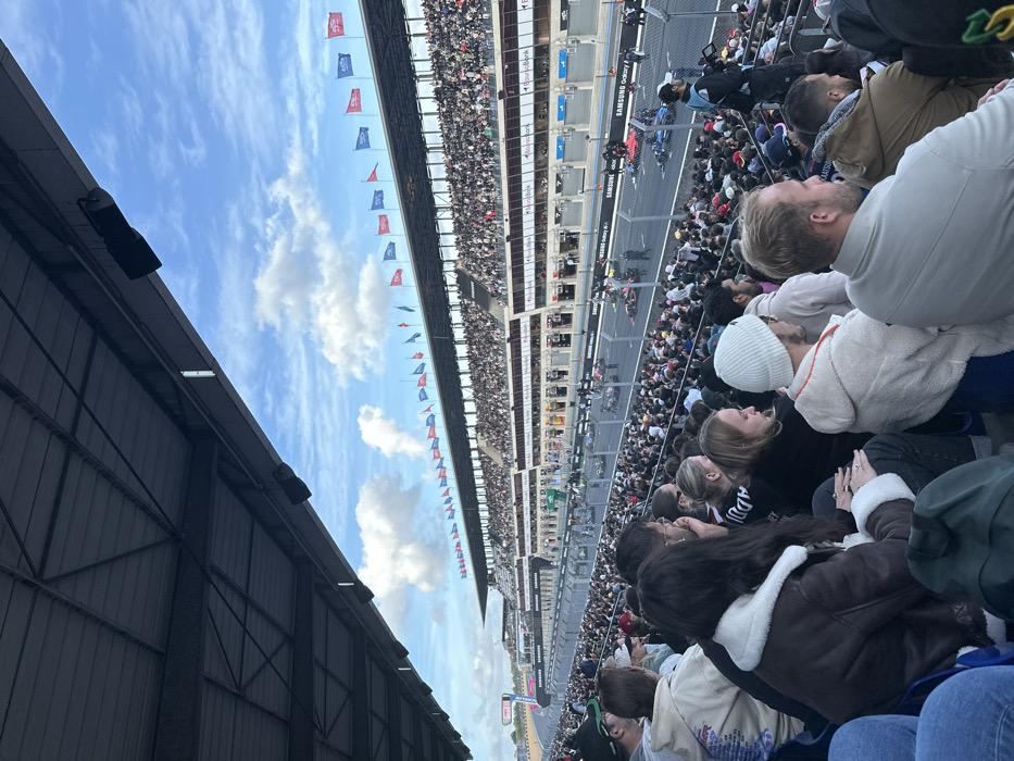 - "The image depicts a crowded grandstand overlooking a race track and pit lane area at the Circuit de la Sarthe in Le Mans, France" by FM-FqKIp2, licensed under CC BY 4.0