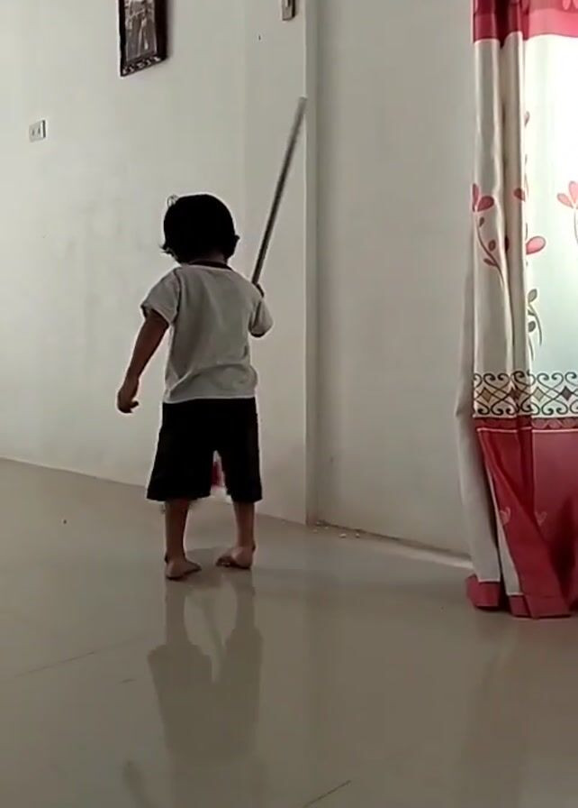 - "A young child stands in a room and swings a broom" by FM-ooOYw1, licensed under CC BY 4.0