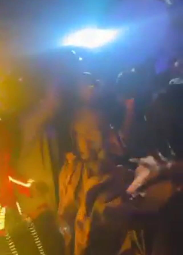 people in a crowded, dimly lit space, possibly a party or event