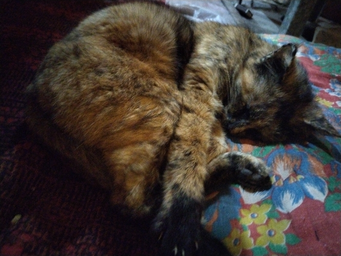 - "An image taken in Toptik-Saray, Uzbekistan, depicts a tortoiseshell cat asleep" by FM-CNZ8C3, licensed under CC BY 4.0