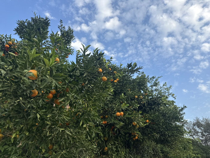 - "The image depicts an outdoor scene located in Rishpon, Israel, primarily showcasing a dense arrangement of orange trees" by FM-ZRzWg1, licensed under CC BY 4.0