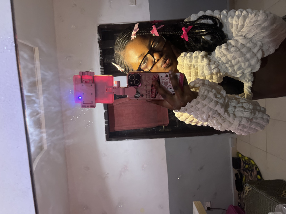 - "A woman with braids adorned with pink bows takes a selfie in a mirror" by FM-Ndipm1, licensed under CC BY 4.0