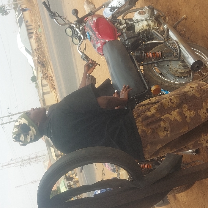 - "A man wearing a black shirt and patterned pants sits on a motorcycle" by FM-YzAfB2, licensed under CC BY 4.0
