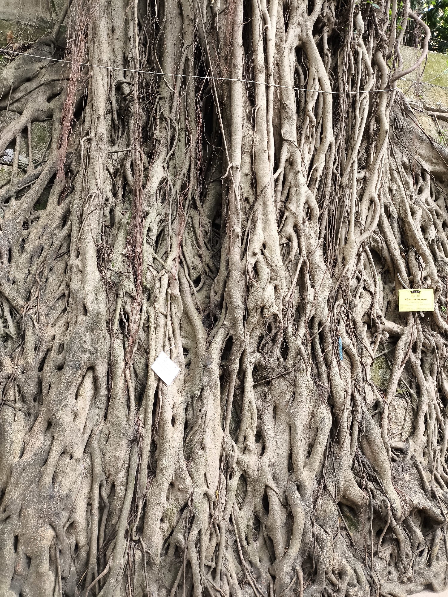 dense network of tree roots covering a surface, possibly a wall, in Hong Kong, China