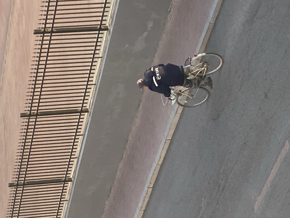 - "An overhead shot captures a person on a bicycle next to a fence" by FM-7sf2h2, licensed under CC BY 4.0