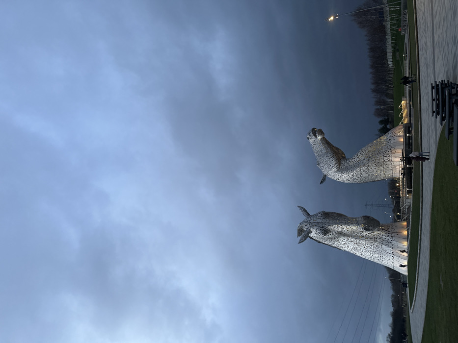 - "The image depicts The Kelpies, two large metallic horse head sculptures, located in Helix Park, Falkirk, United Kingdom, under a dark, heavily overcast sky indicative of dusk or early evening" by FM-NoS4g1, licensed under CC BY 4.0